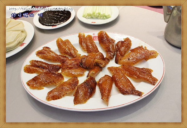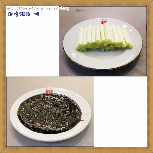 醬,加上蔥白,折疊而成,吃起來有蔥白些許辣味,配合酥脆鴨皮與剛好的甜麵醬,