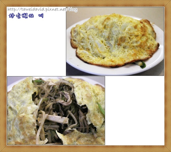 冬粉、木耳等材料組合而成,外面再舖上一層厚厚的蛋皮,吃起來有點像韭菜盒子…