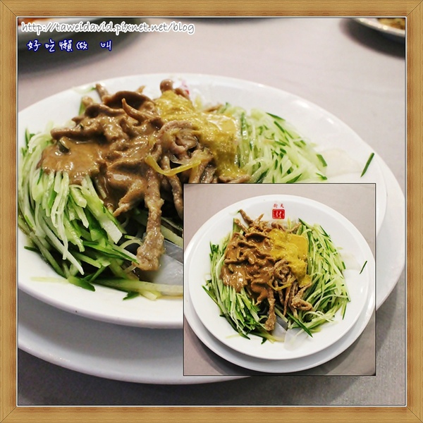 炒肉絲,再淋上芝麻醬及黃芥末,攪拌均勻後,吃起來非常爽口,帶著微微嗆味!