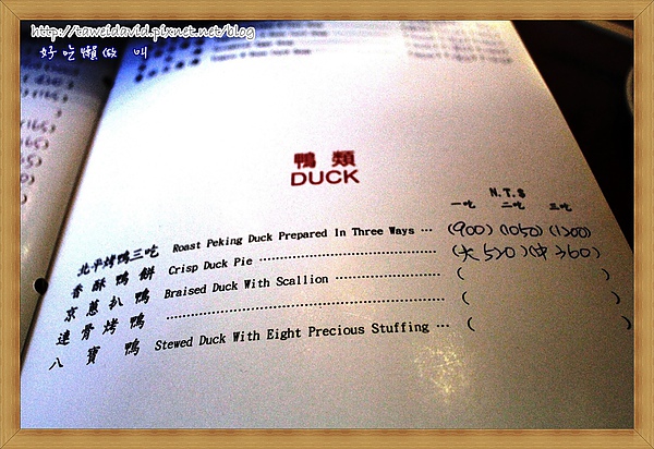 持古人方式,來點看看他家的 一鴨三吃 NT$1200元,點完近30分鐘後服務人員將