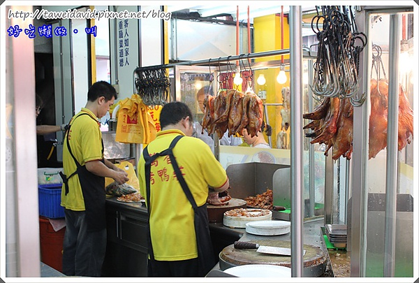 兩位店裡的師傅正忙碌著片鴨,兩分鐘可以片好一隻鴨肉,手腳非常俐落。