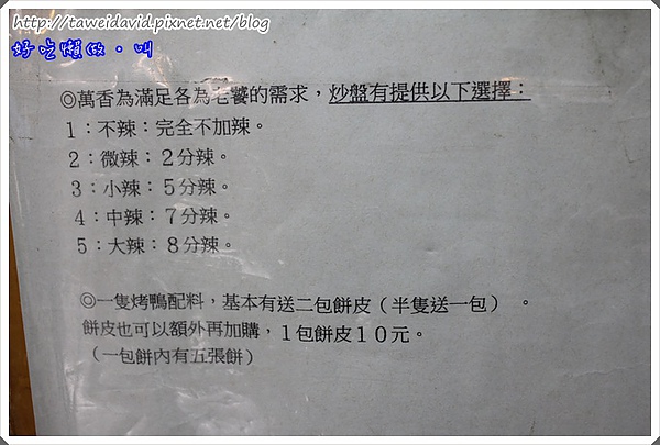 萬香的快炒可分為不辣到大辣五種調理方式,加購餅皮一包十元整