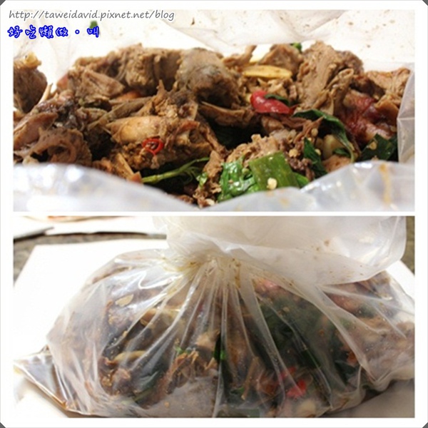 另一吃就是把帶肉的鴨骨大火快炒,再加入九層塔及醬汁及你希望的辣度來拌炒好後再裝入袋子