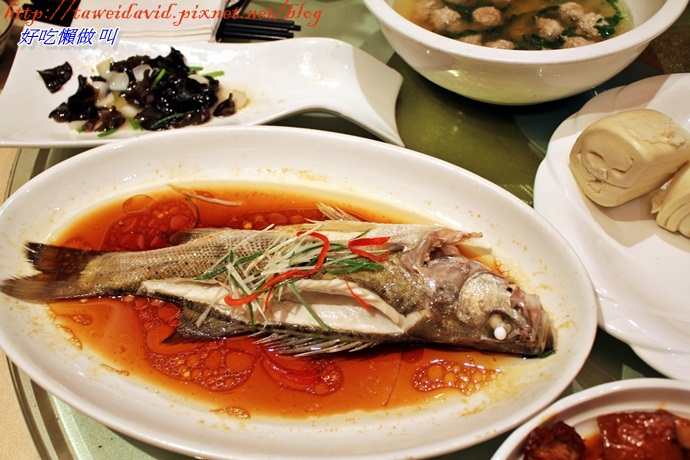 送上來的鱸魚還算大隻,魚肉上加了薑絲跟辣椒,用醬油來調味,也是一般烹調常見的方