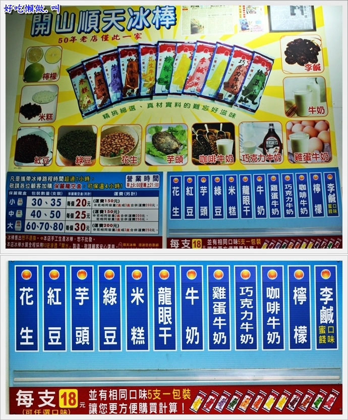 潢。看到海報寫著一支冰棒要價18元,讓我有點小小的吃驚!先挑選了幾個口味,將就的在車上