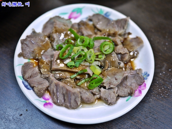 這切成薄片的肝連,簡單的水煮之後,淋上濃郁的醬汁,灑上幾許的青蔥,肉質軟嫩又富有嚼勁