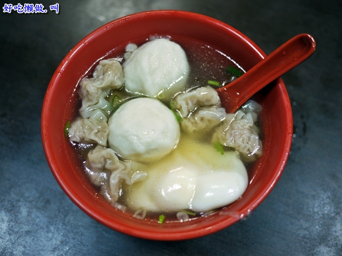 魚丸、餛飩加上蛋包組合而成的湯,是多數人吃綜合湯的搭配方式。雖然還有一樣貢丸可以選擇