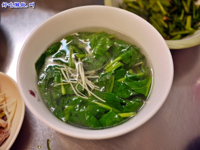 這碗青菜湯真的很清淡,除了湯裡有滿滿青菜之外,能看見就是幾許的嫩薑絲,喝起來很有蔬菜